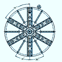 ☆是立式車床配套的專用卡盤(pán),也可用于其它機(jī)床。